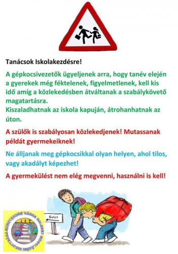 Bár már második hete tart a 2016/2017-es tanév, fokozottan kell figyelni a közlekedőknek az oktatási intézmények környékén, mert a gyerekek még féktelenek, a nyári élmények hatása alatt vannak, kell egy kis idő amíg a közlekedésben átváltanak a szabálykövető magatrtásra.