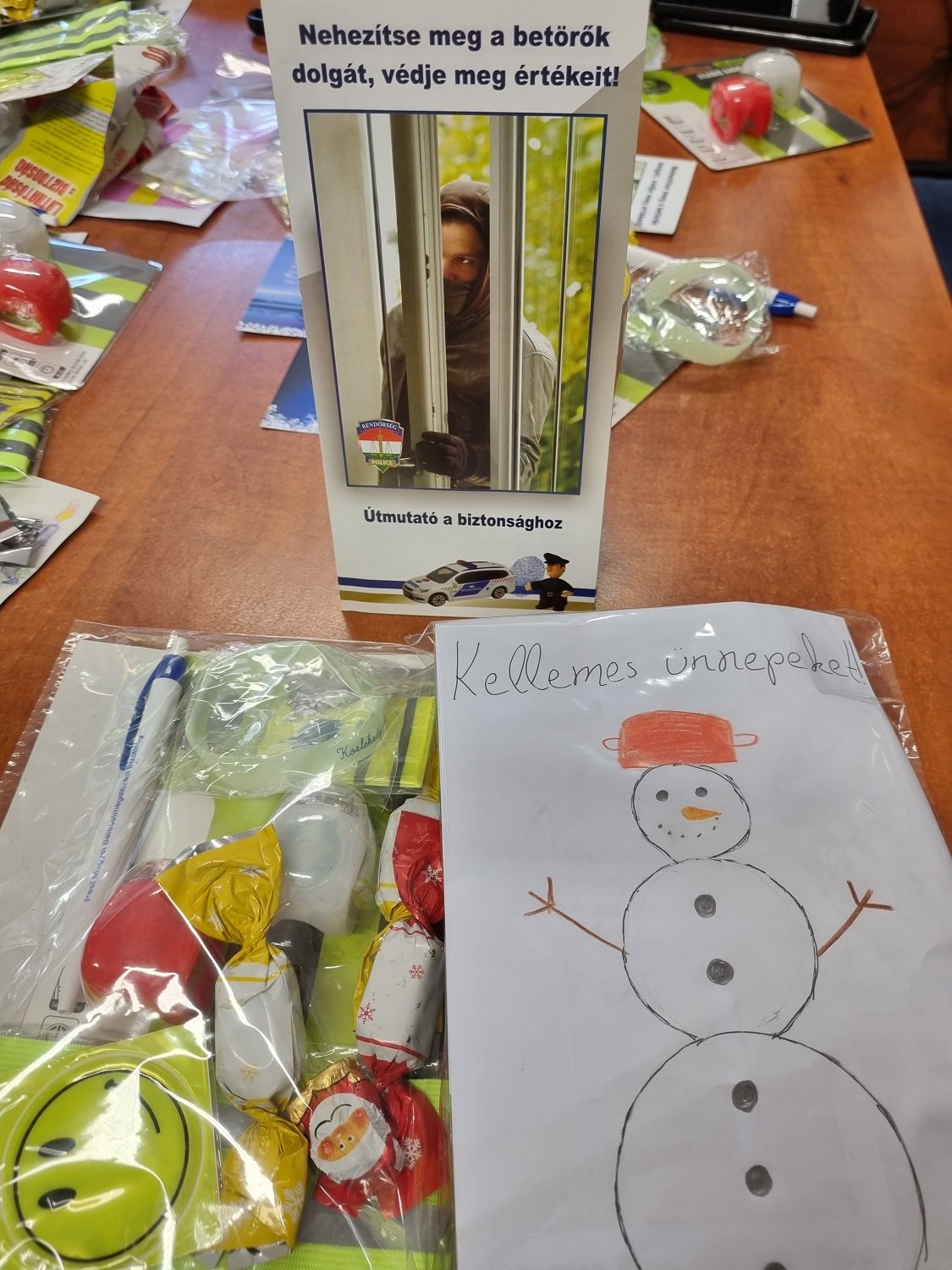 A csomagokban nem csak rendőrös - baleset-, és bűn-megelőzési - ajándékok voltak, hanem gyerekrajzok is. A műveket nem az egyenruhások készítették, hanem gyermekeik, akik így akartak egy kis melegséget csempészni az idősek, néha magányos napjaiba.