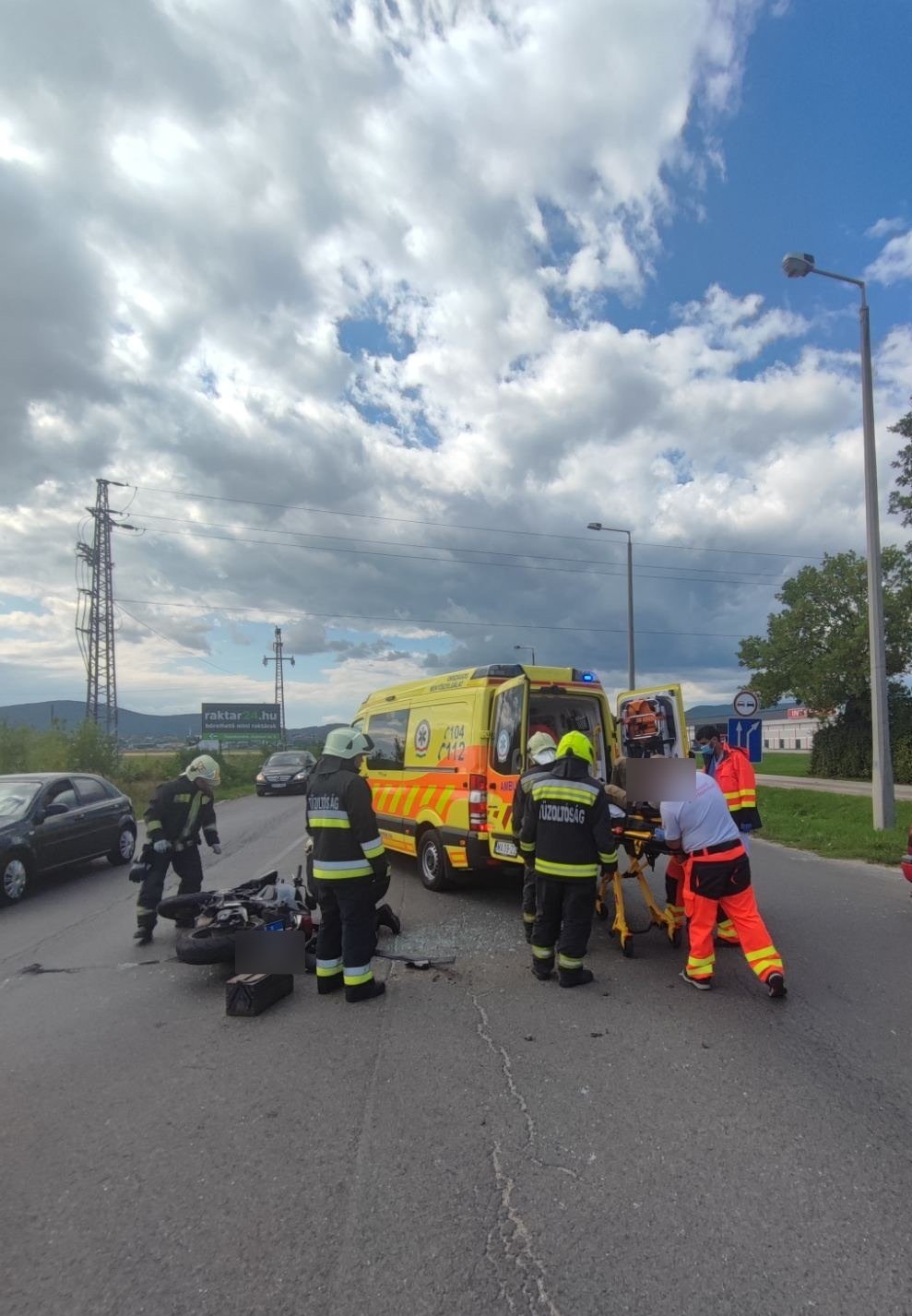 Személygépkocsi és egy motorkerékpáros ütközött össze hétfő délután Szentendrén, a Dobogókői úton. A felborult motorkerékpár forgalmi akadályt okozott. A szentendrei hivatásos tűzoltók áramtalanították és átvizsgálták a járműveket, megszüntették az üzemanyagfolyást, majd biztosították a helyszínt.
