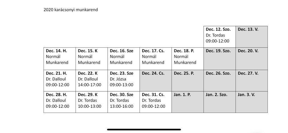 December 24-én, 25-én, 26-án és 27-én zárva tart a rendelő.